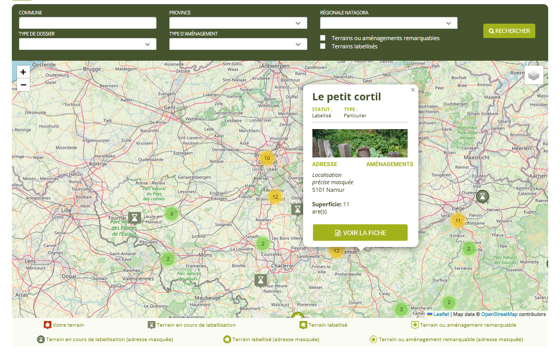 2. Cliquez sur "Voir les terrains du Réseau Nature"
